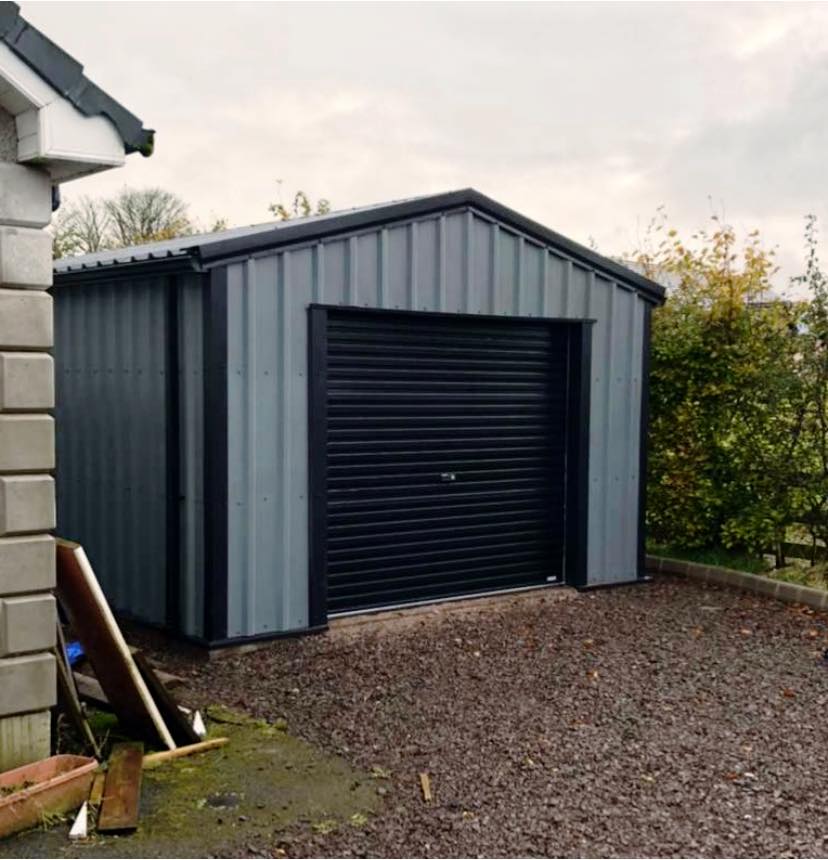 6m x 4m x 2.4m car garage completed in merlin grey and black. This colour combination is proving to be very popular. We recommend this size of building for a standard single car garage.